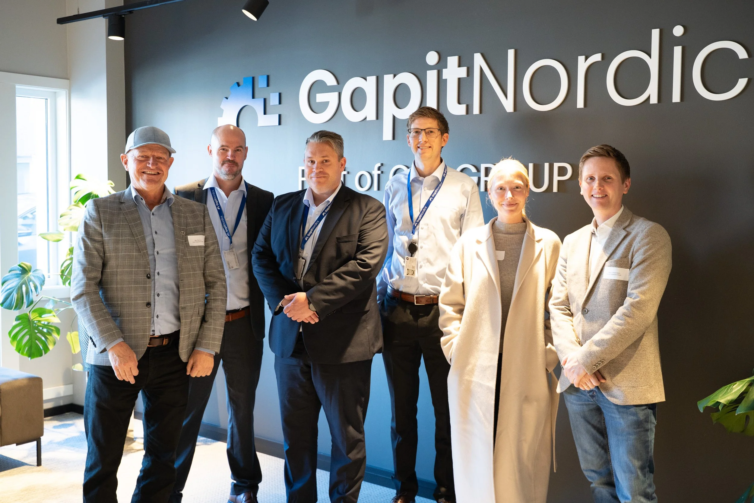 Photo: Gapit Nordics. From left: Bjørn Rønning, NDI, Svenn Ove Edvardsen, Gapit Nordics, Kjetil Kåsin, Gapit Nordics, Kjetil Mjøs, Gapit Nordics, Ina Hansen Ofte, NDI, Reynir Johannesson, NDI